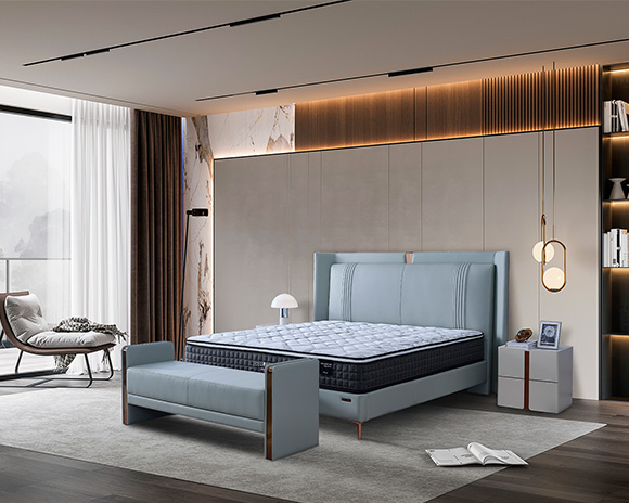2、以去繁從簡的設(shè)計(jì)形式,將柔軟舒適靠包內(nèi)嵌其中,以此書寫主臥室內(nèi)涵且溫暖的人文情懷。